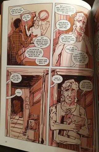 On Tuesday, I wrote about the ways that Damian Duffy’s illustrations convey just as much emotion to the reader as Octavia Butler and John Jennings’ words in the graphic novel adaptation of Butler’s Kindred. Today, I want to look at the role of literacy in Kindred. Dana Franklin and her husband Kevin are both writers, and thus have a high level of literacy; however, their abilities to read, write, and more importantly critically interrogate the printed word and even their own surroundings do not protect them when they travel to Antebellum Maryland. It is this aspect of Kindred that I want to look at a little more closely.