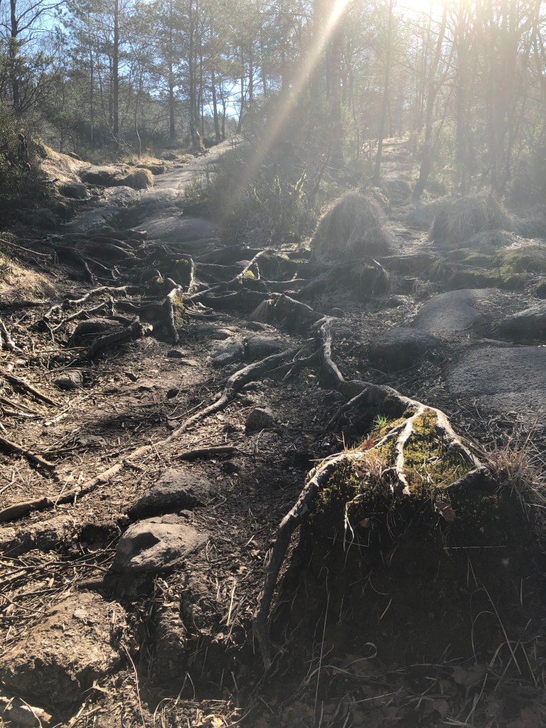 While I view, on one hand, these oaks as tainted and arising from disease, I also them as testaments to survival and what we can all accomplish if we seriously excavate what lies beneath our feet. As I was hiking Løvstakken this past weekend, I kept coming across trees growing out of the rocky surface. While these trees aren’t oaks, most are pine and birch, I started to think about the roots in a different manner. The roots of these trees find a space, amidst the rocks, to latch on to. They maneuver around the hate and burrow into the life giving earth for nourishment. They find a way, among all of the inhospitable terrain, to survive and thrive.