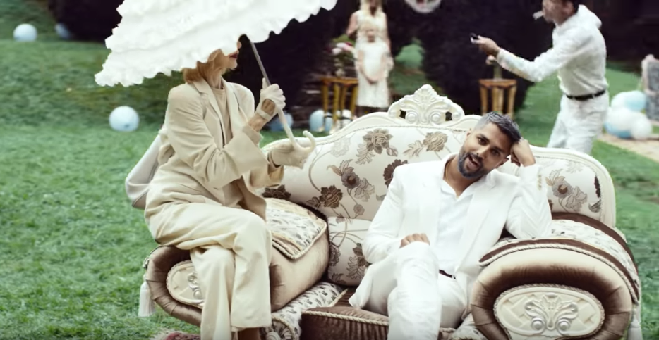 During the third verse, Chirag spray paints the white men brown before they enjoy a night of partying. The image of Chirag painting the men reverses, in some ways, the positioning in the song. They become like him; however, this does not last because as the video progresses the paint starts to rub off as they wrestle with another and drink. Thus, they become white again.