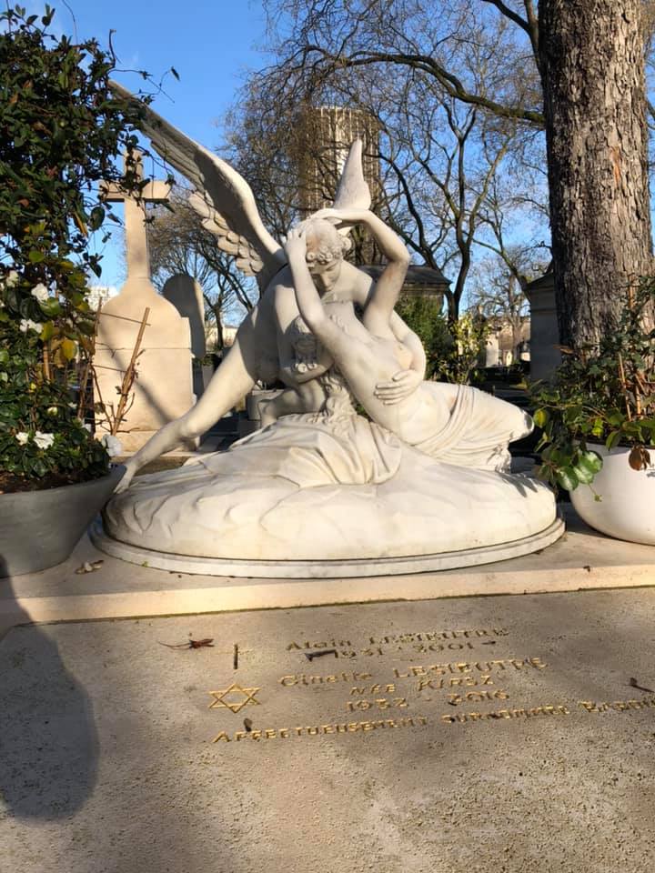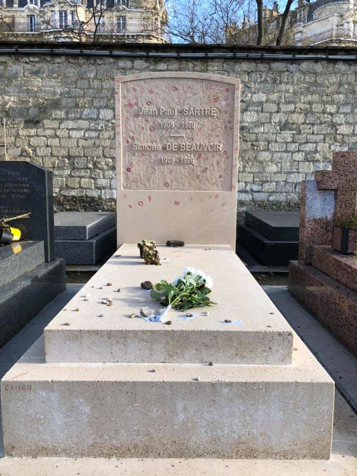 As I looked for Jean Paul Sartre and Simone de Beauvoir, I encountered a woman walking around. I figured that she was searching for the same monuments that I was, looking for some connection with those buried within Paris. I saw her stop, stand in front of grave, and take a picture. I walked around so as not to disturb her moment of connection with de Beauvoir and Sartre (they are buried in the same space). After she left, I walked over and gazed at the space. The headstone contained countless lip prints from people who had kissed it, leaving their own mark of reverence upon the site. Along with these, there were small stones on the grave itself, holding down transit tickets and other pieces of paper. These mementos signify the tangible connection that visitors had to the site. For them, it became a pilgrimage, a destination to visit, a physical, unaltered, link to de Beauvoir and Sartre.