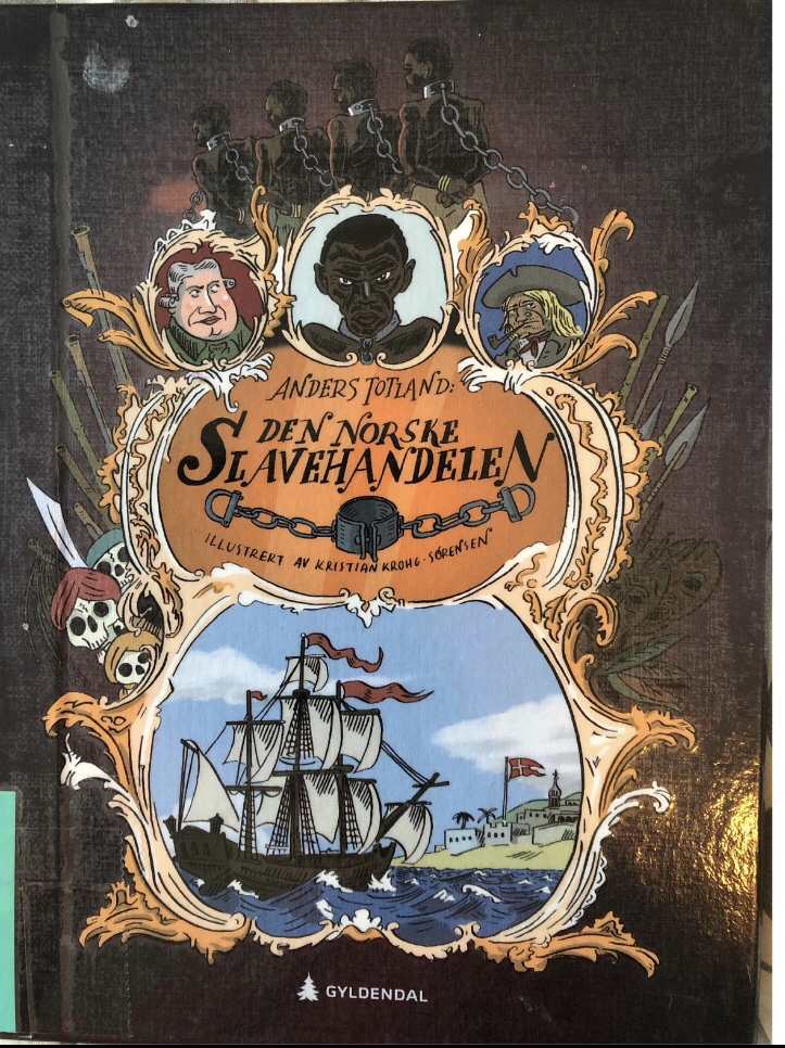 Along with Slaveskipet Fredensborg, I also found Anders Totland’s Den Norske Slavehandelen (The Norwegian Slave trade). Totland’s book is not a graphic novel, but it does have illustrations. The back cover points out that when most people think about slavery they think about the United States. However, it moves to point out that Norwegians partook in the slave trade both in shipping and on plantations, causing sickness, death, oppression, and strife. The illustrations are disturbing, and I have not been able to translate this work or the graphic novel yet, but my plan is to translate both and examine the ways that each presents Norway’s involvement with the slave trade.
