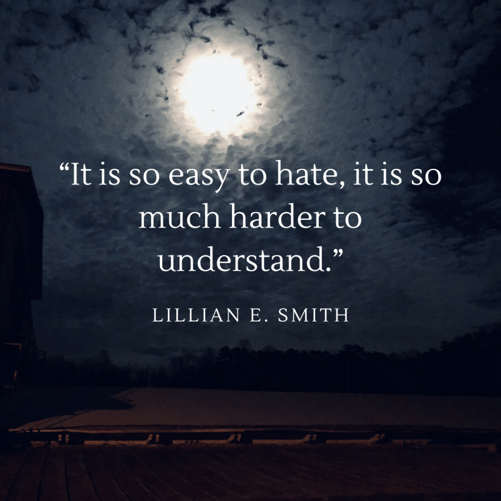 As Lillian Smith wrote, “It is so easy to hate, it is so much harder to understand.” We need to make sure that we teach our children how to understand. We need to make sure that we learn to understand. Because if we don’t we will easily get sucked into the hate, falling into the bullshit.