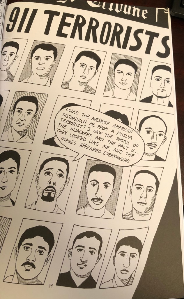 As he points out these moments, El Rassi says, “What’s so frustrating about all this is that Americans don’t even know who they hate. Since there is so much confusion and ignorance it may be useful to explain what an Arab actually is.” El Rassi, over the course of four pages, details the history of Arabs and also points out how on can be Arab and Muslim, Arab and Jewish, or Arab and Christian. His point here, as he makes clear, is that individuals, myself included for a long time, conflate Muslims and Arabs, thinking that anyone who is Arab is an Islamic fundamentalist terrorist. This stems, for the most part, from media narratives, both in popular media such as films but also from the highest positions of power in the government.