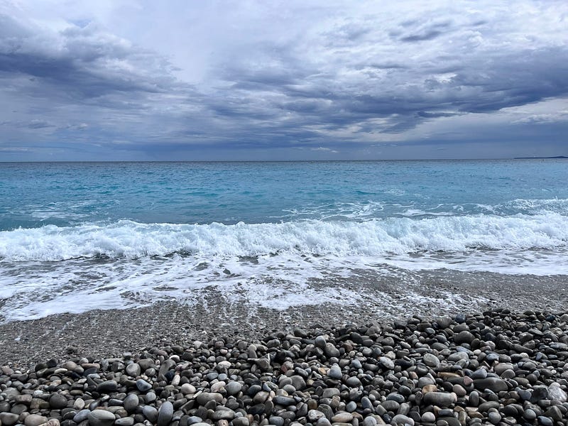 Sitting on the rocky beach in Nice, I watch the Mediterranean lap up onto the shore, spraying me with sea foam as I pick up multi-colored rocks and twirl them between my fingers. The smell of salt hangs in the air, and as the waves crash upon the rocks and retreat, the water rolls back into the sea, causing a cascading sound of rocks clattering together. If energy never dissipates and merely changes with what is affected upon it, then the water I see and the sound I hear have been here for centuries, carrying sailors across these waters to Marseille and beyond. What voices exist within the clear blue waters that lap up against me? Whose voices? Whose stories?