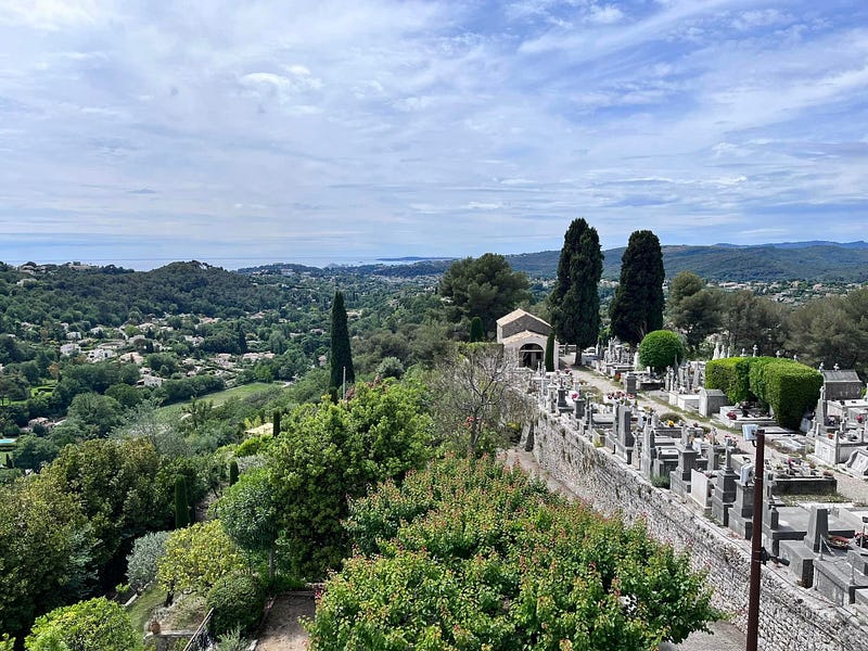 For me, though, this trip to St. Paul de Vence was a pilgrimage to walk the cobblestones that Baldwin passed over, to see the views he gazed upon, and to experience his refuge, his escape from the United States where he could reflect back across the Atlantic on his homeland from his adopted postage stamp of land overlooking the Mediterranean and the Alps. The spot where he could breathe and exist. If Marseille embodies humanity, St. Paul de Vence embodies respite. the pastoral outside the urban. It embodies, for me, a sacred space where Baldwin existed, unrestrained by the strictures and oppression of his native land.